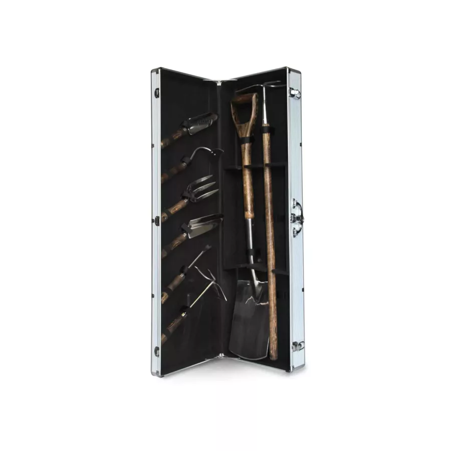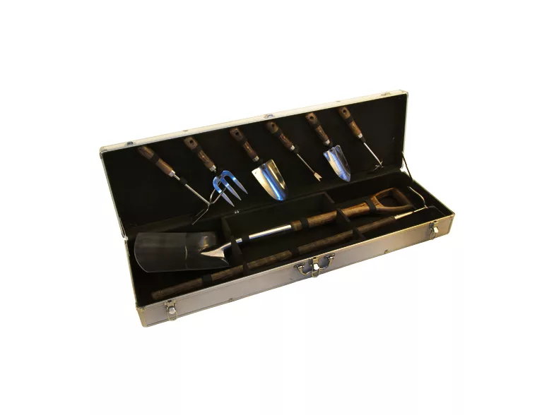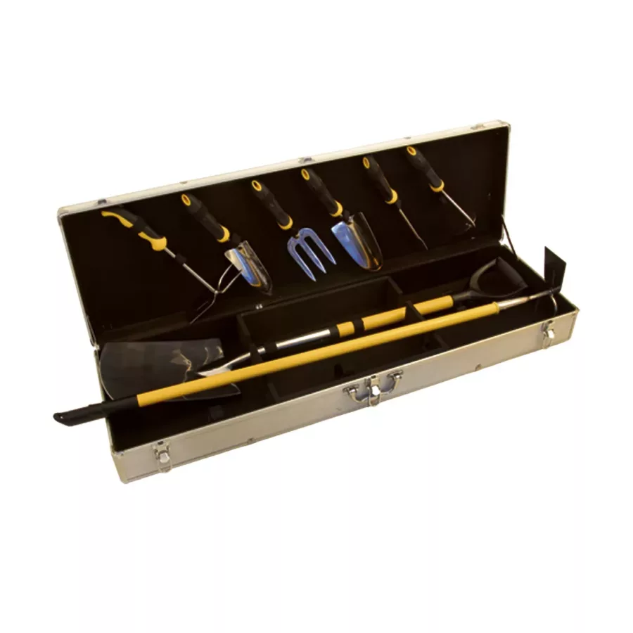 Maleta de herramientas de acero inoxidable con mango de madera 8 herramientas