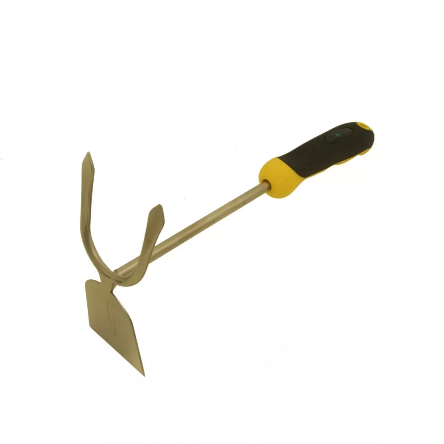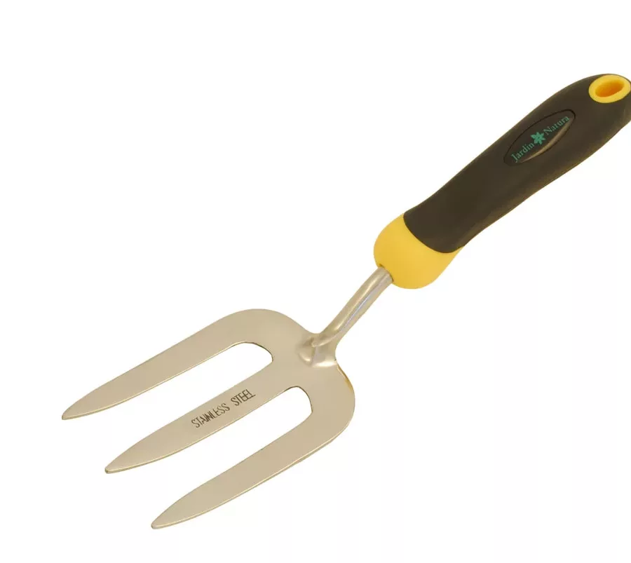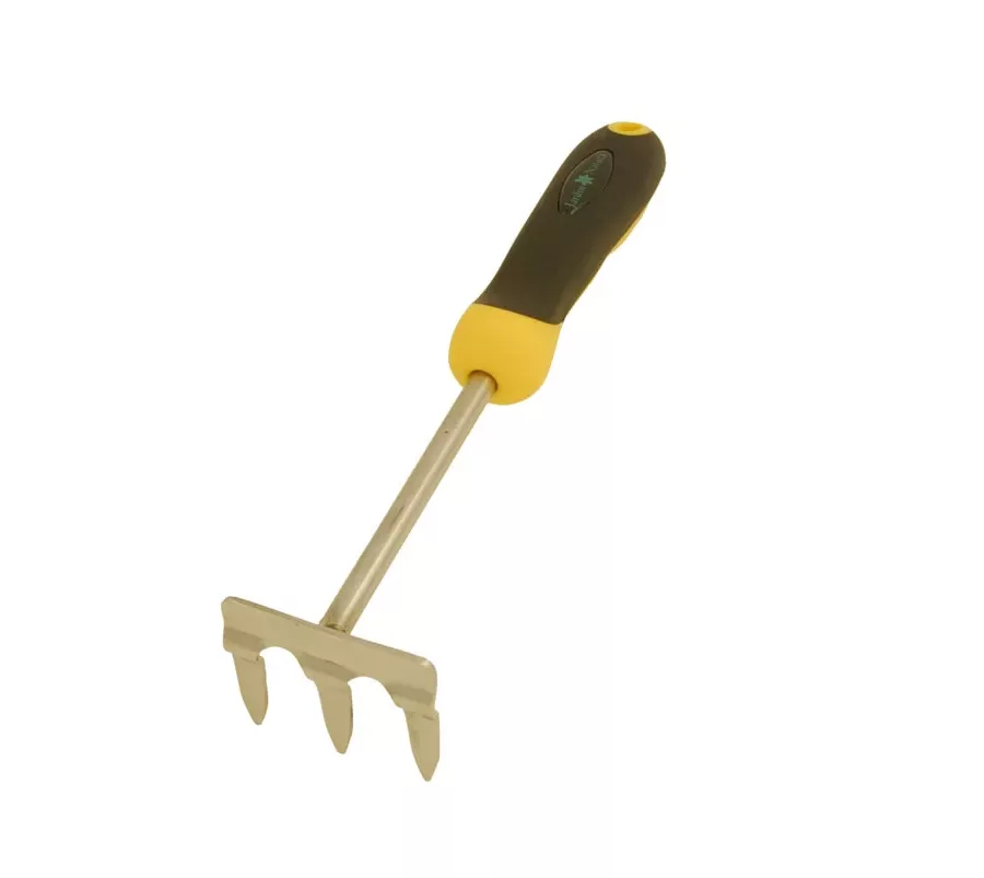 Rastrillo de mano de 3 dientes de acero inoxidable y mango de fibra