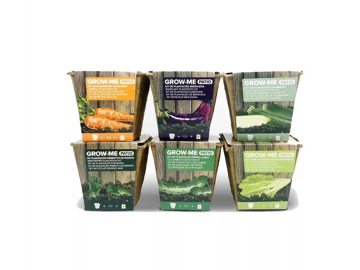 GROW·ME de BERENJENA GROW·ME de ZANAHORIA GROW·ME de LECHUGA ROMANA GROW·ME de PIMIENTOS DE PADRÓN GROW·ME de PEPINO |