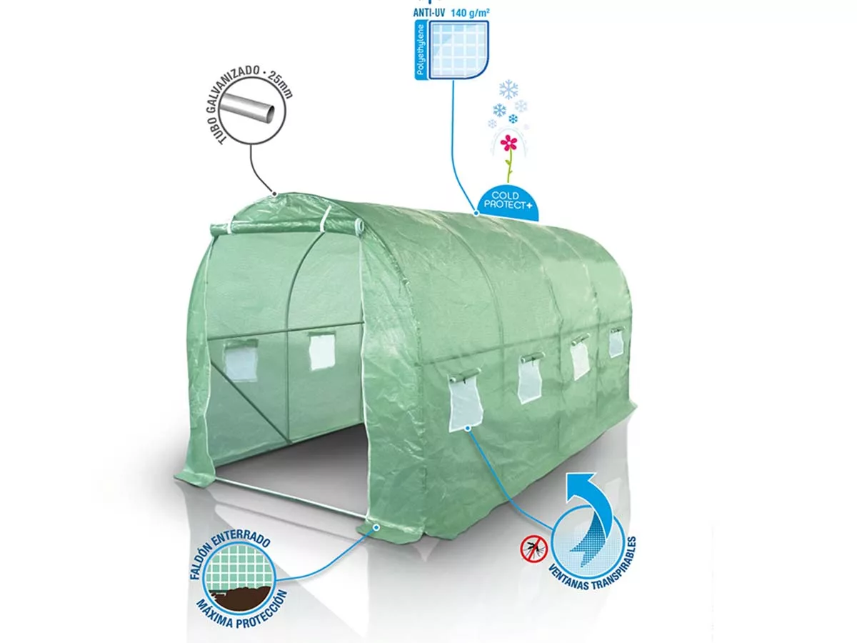 ¡Tip! A la hora de montar el invernadero es recomendable extender la funda y dejar que se dilate durante aproximadamente 1 hora para evitar desgarros.