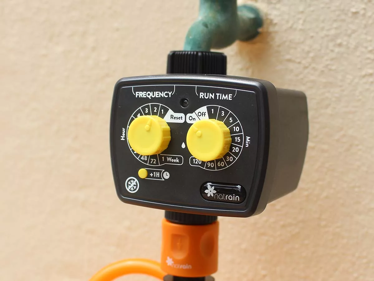 Trabaja 0 bars Adaptador rápido y adaptador para grifo de 3/4″ Resistente a la intemperie Botón de retraso es de 1h-2h-3h Frecuencia de 1h-1 semana |
