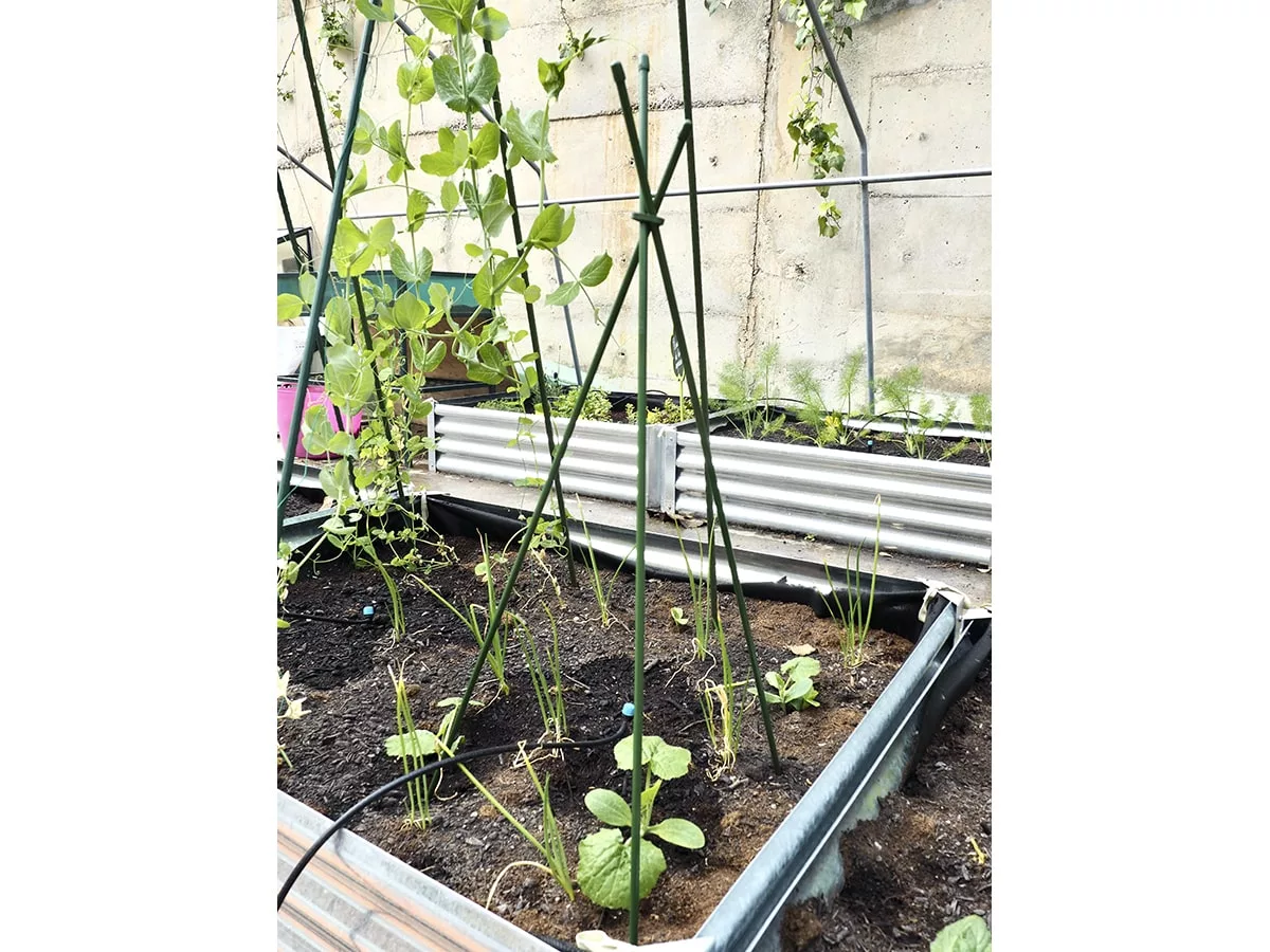 - Se unen en la parte superior creando un triángulo por donde podrán subir los plantas ornamentales según vayan creciendo