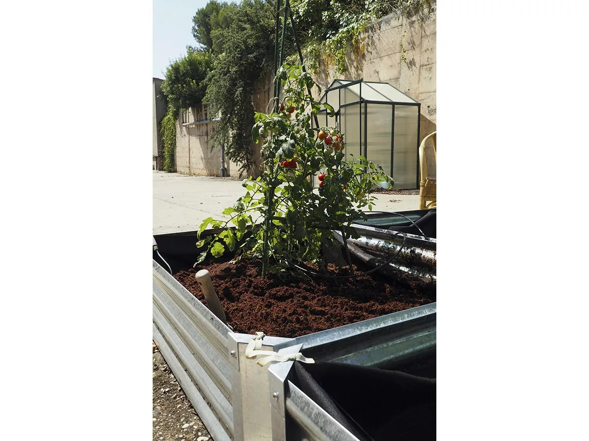 - Se unen en la parte superior para crear un triángulo por donde van subiendo los tomates según van creciendo